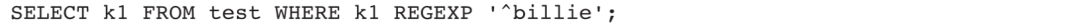1)查找k1字段中以billie为开头的所有数据:
