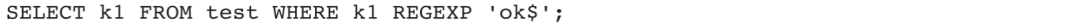 2)查找k1字段中以ok为结尾的所有数据:
