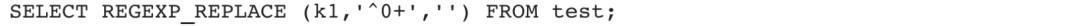 3)去掉k1字段中前置的0: