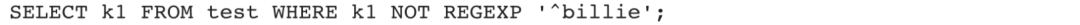 4)查找k1字段中不以billie开头的所有数据:
