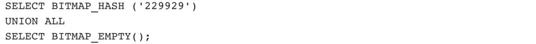 当UNION ALL字段为空时,不能直接用NULL,需要用BITMAP_EMPTY函数,例如: