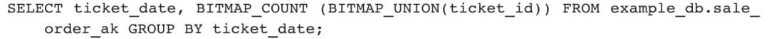 2)与BITMAP_COUNT函数组合求得ticket_id字段的去重汇总值: