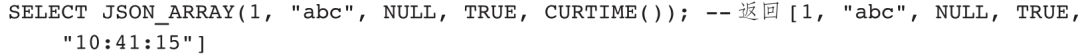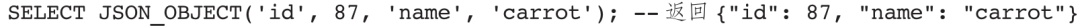 JSON_ARRAY用于生成一个包含指定元素的JSON数组,未指定元素时返回空数组。JSON_OBJECT用于生成一个包含指定Key-Value对的JSON对象,当Key值为NULL或者传入参数个数为奇数时,返回异常错误。