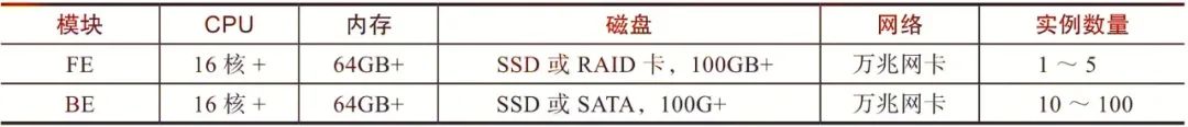 为了提高Doris数据库的性能,单台服务器也有硬件要求。Doris的开发测试环境和生产环境要求分别如表2-1和表2-2所示。