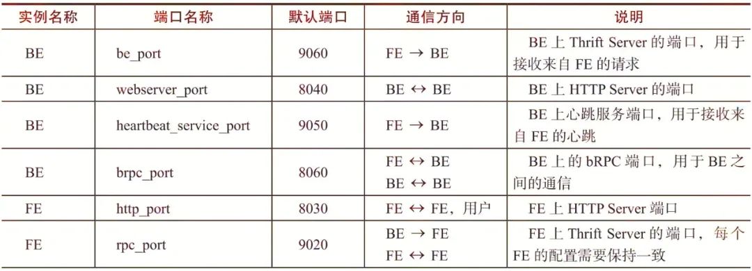 Doris的各个实例之间通过网络进行通信,表2-4展示了各服务组件的通信端口。