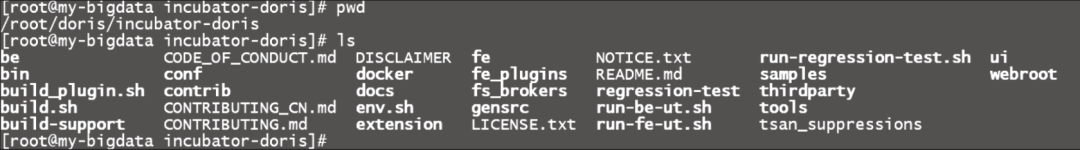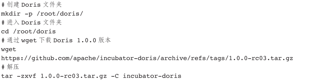 下载Doris源码并解压到指定目录,例如放到/root/doris目录。