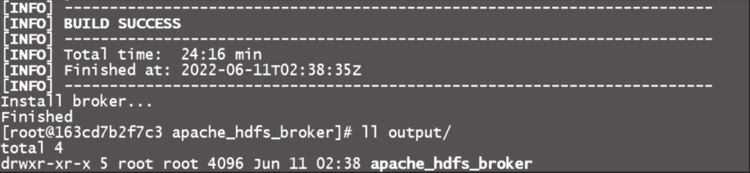 待编译完成后,可以在output目录下看到编译好的apache_hdfs_broker文件(见图2-6),复制文件夹到对应的FE节点即可。