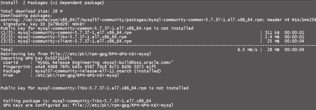 实际在安装时,执行yum install mysql-community-client.x86_64-y命令可能会遇到图2-13所示的错误。