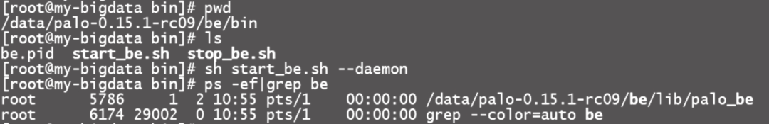 BE是由C++语言开发的,所以不需要安装其他依赖软件。BE安装过程和FE一样,也非常简单,直接进入bin目录执行sh start_be.sh --daemon命令即可。启动及验证过程截图如图2-16所示。