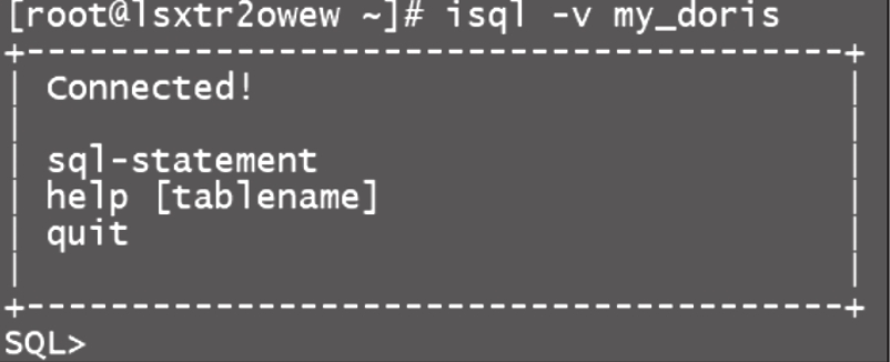 保存配置以后,通过isql -v my_doris验证Doris数据源连接是否成功。连接成功的返回结果如图2-22所示。