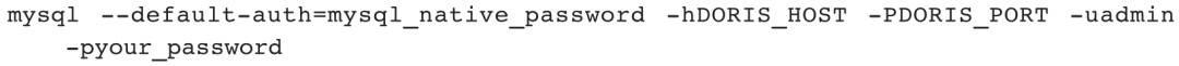 用户在创建Doris集群时设置的密码为Doris的admin用户的密码。Doris集群初始默认包含一个admin用户,用户可以通过admin用户和Doris进行初次连接: