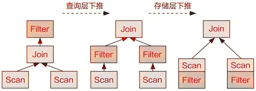 4)智能预过滤。智能预过滤可以将SQL中的析取范式转换成合取范式并提炼出公共条件,以便预先过滤部分数据,从而减少数据处理量。