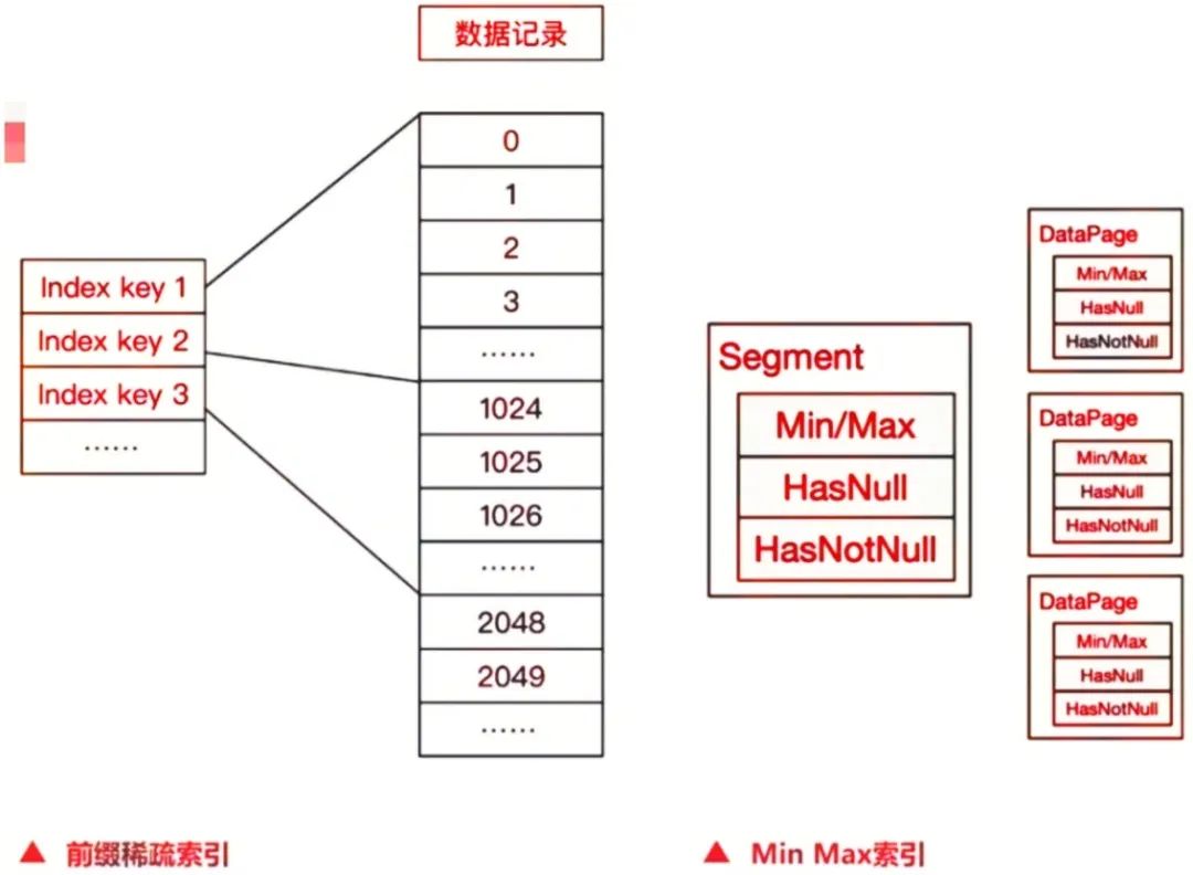 图1-11 Doris前缀稀疏索引和Min Max索引示例