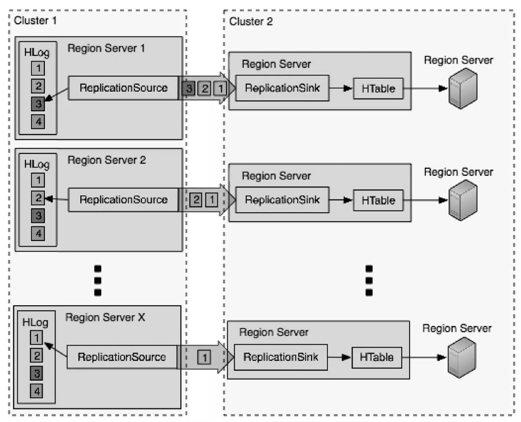 数据同步是 RegionServer 和 RegionServer 之间对拷的 (所以 Replication 有一个限速配置:set_peer_bandwidth,限制的也是单台 RegionServer 用于同步 WAL 日志的带宽) RegionServer 会启动独立的线程异步执行 WAL 日志推送和接收 为了保证Region Server 和 Region Server 之间对拷数据的有序性,WAL Log 的 edits 是以队列形式按顺序推送到目标端并进行回放的 在目标端 edits 是以批量方式写入目标表的
