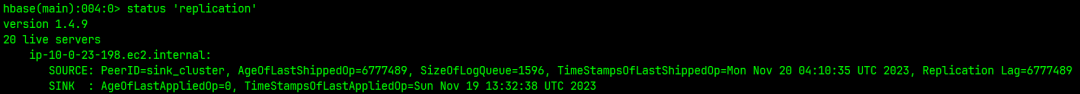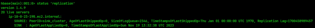 sudo -u hbase hbase shell <<< "status 'replication'"