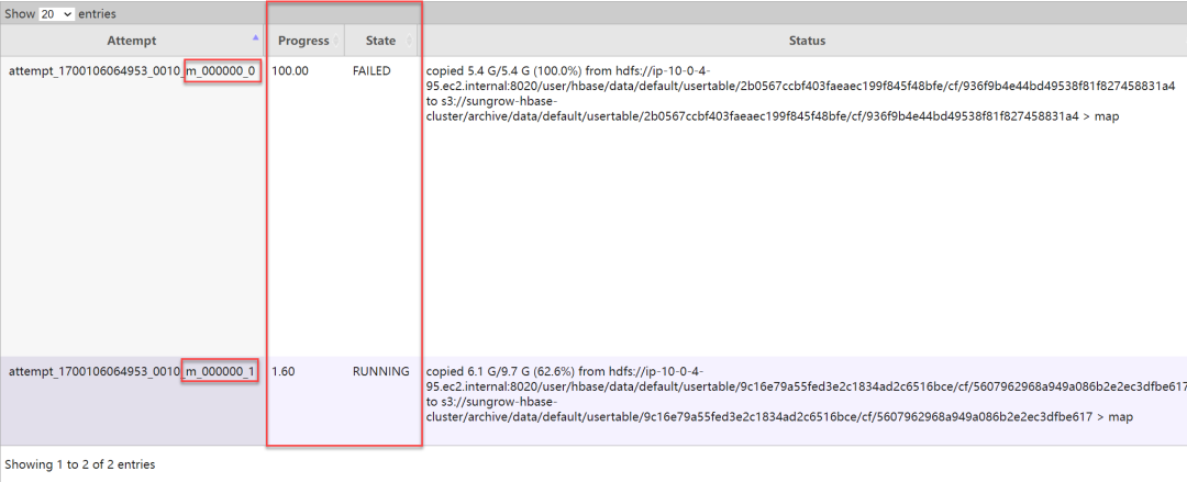 fs.s3.maxConnections。此外,如果在作业执行过程中偶有几次这样的报错,并不会导致整个导出作业失败,因为 Hadoop 会自动重试失败的 map 任务。以下是 MR 作业重试的截图: