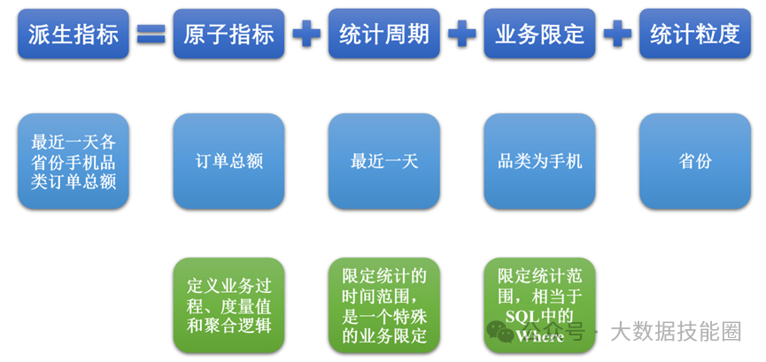 汇总表与派生指标的对应关系是:一张汇总表通常包含业务过程相同、日期限定相同、粒度限定相同的多个派生指标。