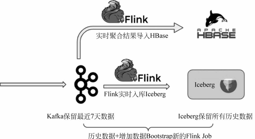 第4个场景使用Apache Iceberg全量数据和Kafka增量数据引导新的Flink作业。