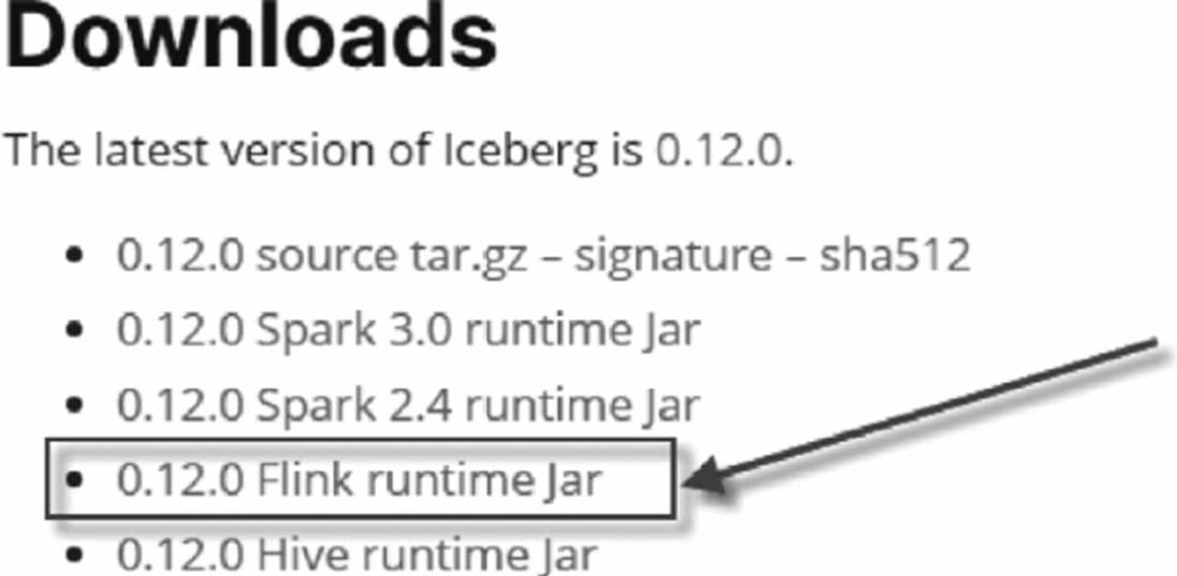 首先要从Apache Iceberg官网下载Iceberg的JAR包,如上图所示。