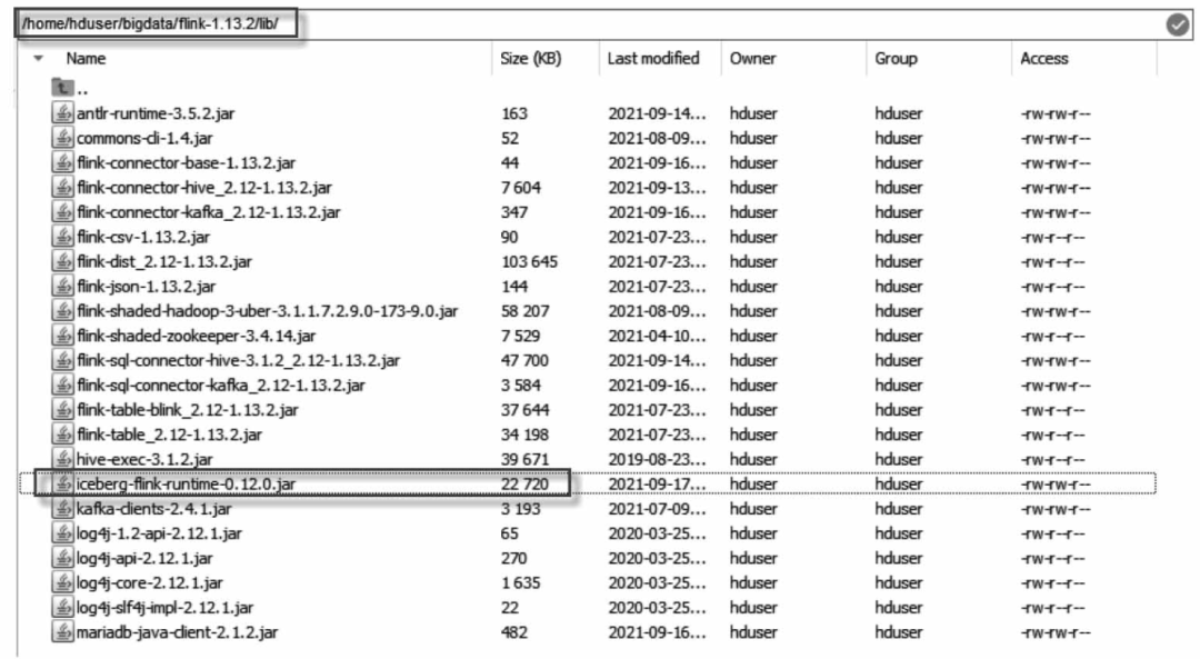 将下载的iceberg-flink-runtime-0.12.0.jar包并复制到Flink安装的lib目录下