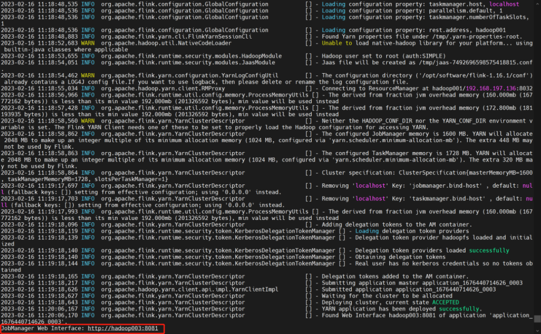 在运行完脚本后会提示如下信息:JobManager Web Interface: http://hadoop003:8081