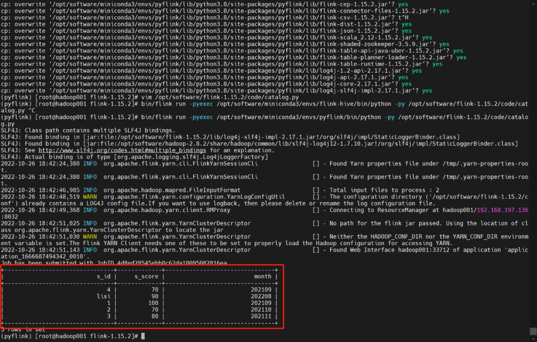 opt/software/flink-1.15.2/bin/flink run -pyexec opt/software/miniconda3/envs/pyflink/bin/python -py opt/software/flink-1.15.2/code/catalog.py