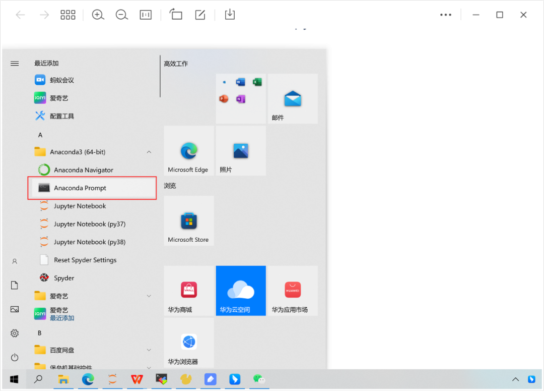 1. windows → 开始 → Anaconda(64-bit) → Anconda Prompt (双击)