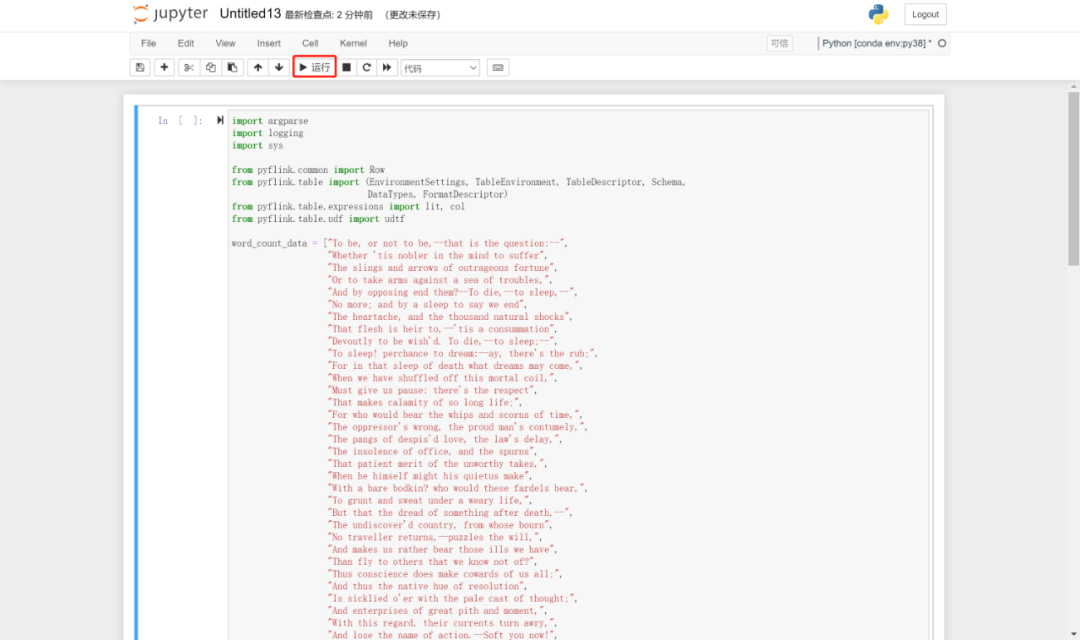import argparseimport loggingimport sysfrom pyflink.common import Rowfrom pyflink.table import (EnvironmentSettings, TableEnvironment, TableDescriptor, Schema,DataTypes, FormatDescriptor)from pyflink.table.expressions import lit, colfrom pyflink.table.udf import udtfword_count_data = ["To be, or not to be,--that is the question:--","Whether 'tis nobler in the mind to suffer","The slings and arrows of outrageous fortune","Or to take arms against a sea of troubles,","And by opposing end them?--To die,--to sleep,--","No more; and by a sleep to say we end","The heartache, and the thousand natural shocks","That flesh is heir to,--'tis a consummation","Devoutly to be wish'd. To die,--to sleep;--","To sleep! perchance to dream:--ay, there's the rub;","For in that sleep of death what dreams may come,","When we have shuffled off this mortal coil,","Must give us pause: there's the respect","That makes calamity of so long life;","For who would bear the whips and scorns of time,","The oppressor's wrong, the proud man's contumely,","The pangs of despis'd love, the law's delay,","The insolence of office, and the spurns","That patient merit of the unworthy takes,","When he himself might his quietus make","With a bare bodkin? who would these fardels bear,","To grunt and sweat under a weary life,","But that the dread of something after death,--","The undiscover'd country, from whose bourn","No traveller returns,--puzzles the will,","And makes us rather bear those ills we have","Than fly to others that we know not of?","Thus conscience does make cowards of us all;","And thus the native hue of resolution","Is sicklied o'er with the pale cast of thought;","And enterprises of great pith and moment,","With this regard, their currents turn awry,","And lose the name of action.--Soft you now!","The fair Ophelia!--Nymph, in thy orisons","Be all my sins remember'd."]def word_count(input_path, output_path):t_env = TableEnvironment.create(EnvironmentSettings.in_streaming_mode())# write all the data to one filet_env.get_config().set("parallelism.default", "1")# define the sourceif input_path is not None:t_env.create_temporary_table('source',TableDescriptor.for_connector('filesystem').schema(Schema.new_builder().column('word', DataTypes.STRING()).build()).option('path', input_path).format('csv').build())tab = t_env.from_path('source')else:print("Executing word_count example with default input data set.")print("Use --input to specify file input.")tab = t_env.from_elements(map(lambda i: (i,), word_count_data),DataTypes.ROW([DataTypes.FIELD('line', DataTypes.STRING())]))# define the sinkif output_path is not None:t_env.create_temporary_table('sink',TableDescriptor.for_connector('filesystem').schema(Schema.new_builder().column('word', DataTypes.STRING()).column('count', DataTypes.BIGINT()).build()).option('path', output_path).format(FormatDescriptor.for_format('canal-json').build()).build())else:print("Printing result to stdout. Use --output to specify output path.")t_env.create_temporary_table('sink',TableDescriptor.for_connector('print').schema(Schema.new_builder().column('word', DataTypes.STRING()).column('count', DataTypes.BIGINT()).build()).build())@udtf(result_types=[DataTypes.STRING()])def split(line: Row):for s in line[0].split():yield Row(s)# compute word counttab.flat_map(split).alias('word') \.group_by(col('word')) \.select(col('word'), lit(1).count) \.execute_insert('sink') \.wait()# remove .wait if submitting to a remote cluster, refer to# https://nightlies.apache.org/flink/flink-docs-stable/docs/dev/python/faq/#wait-for-jobs-to-finish-when-executing-jobs-in-mini-cluster# for more detailsif __name__ == '__main__':logging.basicConfig(stream=sys.stdout, level=logging.INFO, format="%(message)s")parser = argparse.ArgumentParser()parser.add_argument('--input',dest='input',required=False,help='Input file to process.')parser.add_argument('--output',dest='output',required=False,help='Output file to write results to.')argv = sys.argv[1:]known_args, _ = parser.parse_known_args(argv)word_count(known_args.input, known_args.output)
