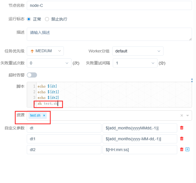 | ${system.biz.curdate} | 定时时间,格式为yyyyMMdd |