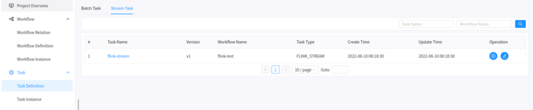 实时任务定义在工作流定义中创建,在任务定义页面可以进行修改和执行。
