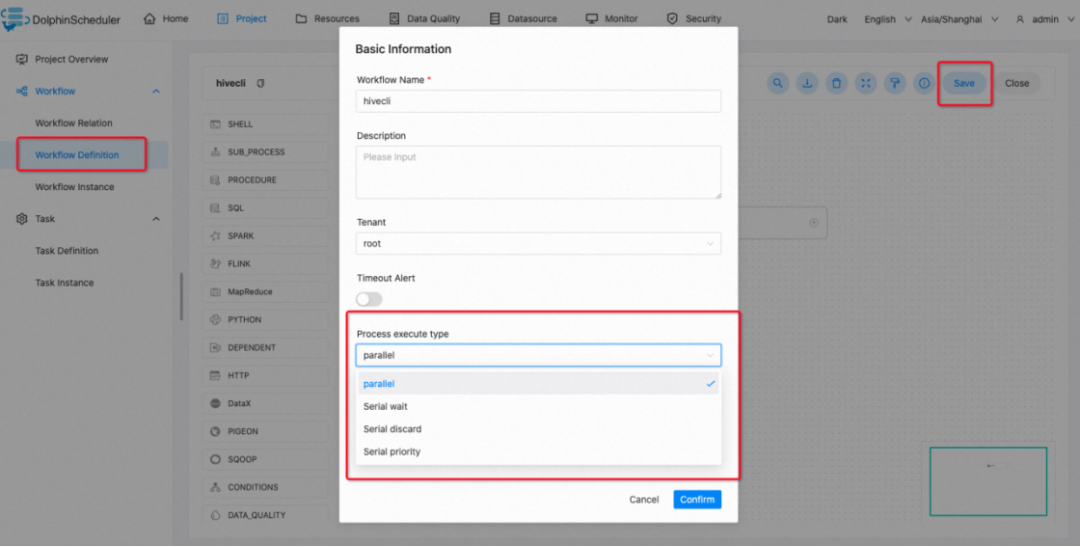 •流程优先级:流程运行的优先级,分五个等级:最高(HIGHEST),高(HIGH),中(MEDIUM),低(LOW),最低(LOWEST)。当 master 线程数不足时,级别高的流程在执行队列中会优先执行,相同优先级的流程按照先进先出的顺序执行。