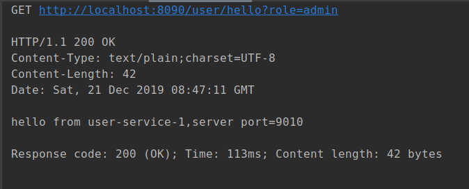 return "hello from user-service-1,server port=9010";