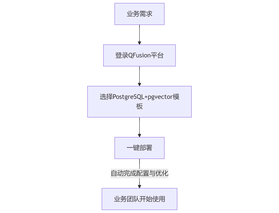 但在QFusion管控下,企业可轻松部署pgvector插件,借助pgvector插件,PostgreSQL可成为RAG系统的高效向量存储引擎,下面是在QFusion管控下的典型应用流程: