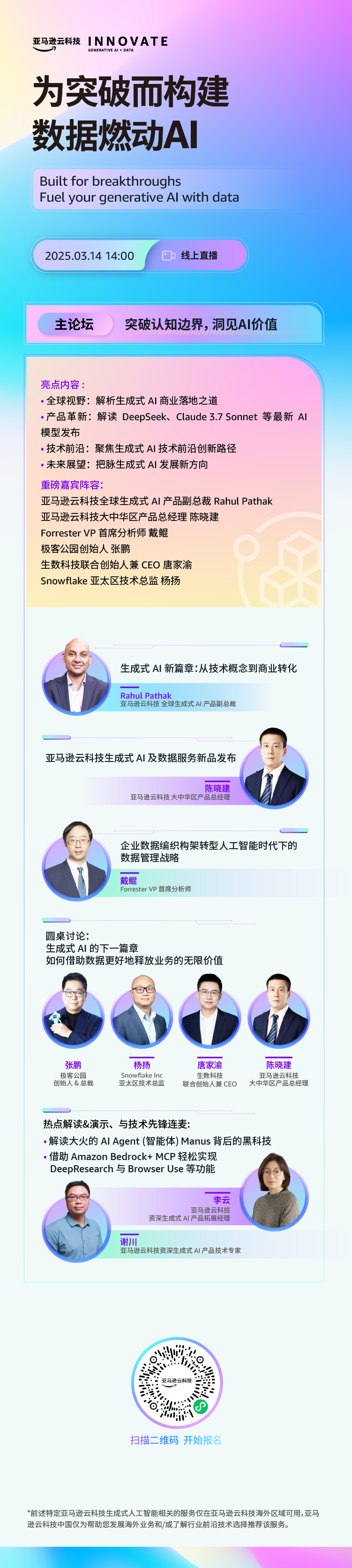 3月14日,亚马逊云科技INNOVATE 2025生成式AI+Data主题线上大会,一场浓缩AI未来进化轨迹的科技盛宴!从底层架构到商业实践,从技术突破到价值释放,全球AI及数据科学领袖汇聚,为您解码未来技术图谱!