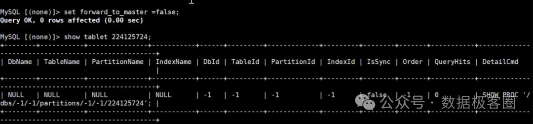 如果partition id != -1,我们就需要先连到一个从FE节点上,执行以下命令: