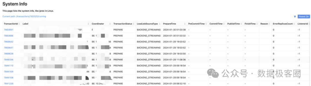 不过有些时候,BE节点下线任务之所以卡住,可能是因为某些事务未能正确提交。这时,可以去FE的HTTP面板查看调度日志,找到卡住的事务并手动Abort它们。