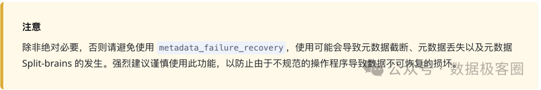禁止用户使用 metadata_failure_recovery,如果已经执行了,需要通过向 partition 写入数据来恢复。