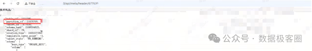 curl 每个副本的meta url, 这个出来的结果会拿到tablet 在BE 端的partition id。
