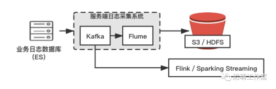 同样的,服务端日志数据抽取需要保证业务正常,我们可选取必要的日志推送至Kafka, 用来补充做离线画像或者实时计算。