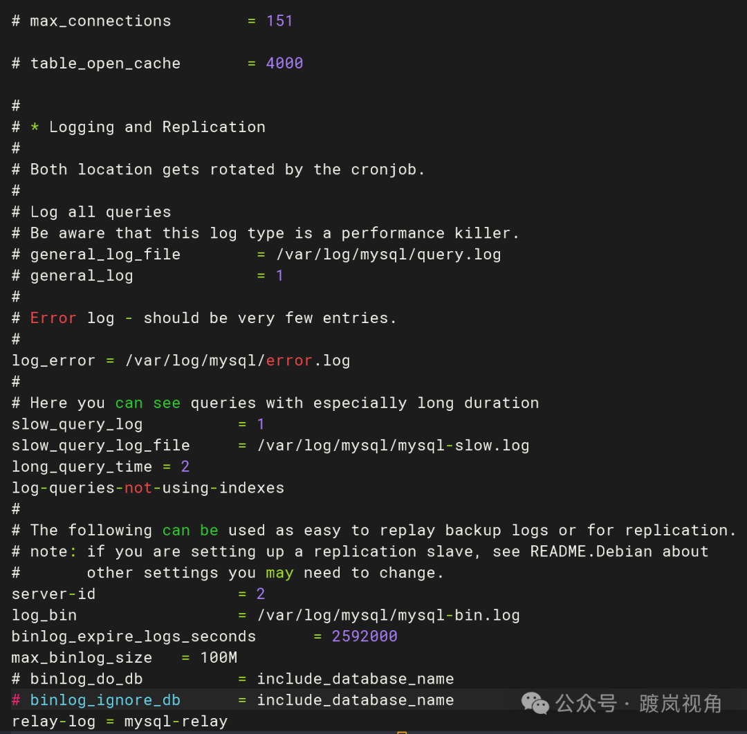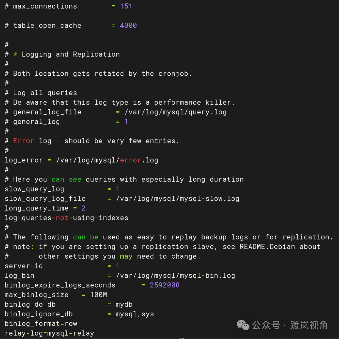 数据库日志文件目录 | /var/log/mysql | 按实际调整 |