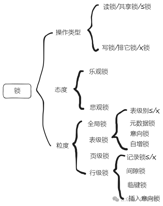 因此对锁进行了不同级别的分类,来应对不同的操作场景,如下图: