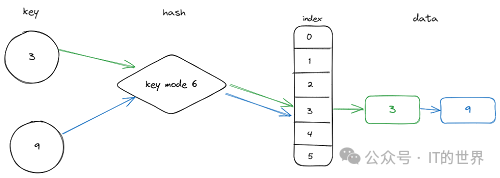 :哈希函数的输出,也叫哈希索引,该索引指向的就是储存的数据。 三个组成部分的关系如下图所示:
