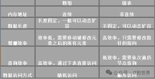 通过上面的表格,数组与链表的异同一目了然,根据不同的特点,选择不同的数据结构。