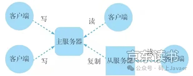 默认情况下,处于复制模式下的主服务器可以执行读写操作,而从服务器只能执行读操作。如下图: