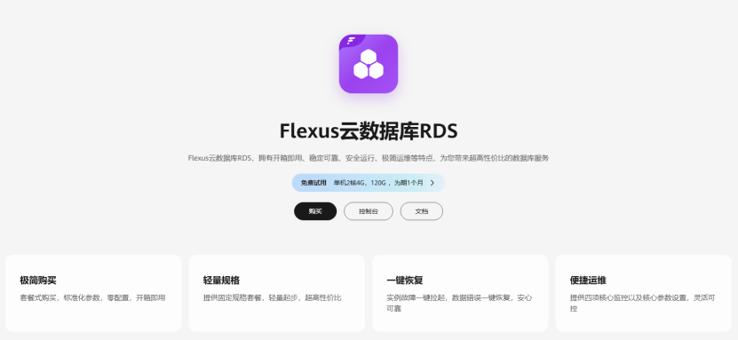 现在正是最佳时机,限时特惠最低仅需 30 元起,轻松享受开箱即用的云数据库服务。无论是快速部署、自动扩容,还是强大的安全保障,Flexus 云数据库 RDS 都能为您的企业提供全方位的支持。