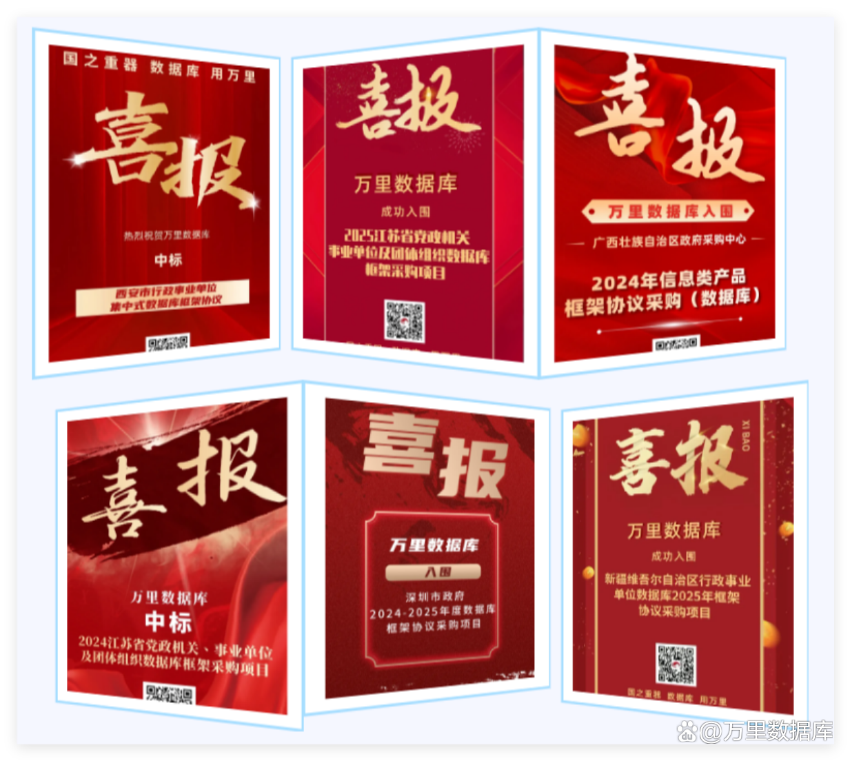 与此同时,万里数据库持续服务全国多省地市,助推各区域数字化转型及信息技术产业高质量发展。去年以来,公司先后入围央采及广西、江苏、深圳、四川、新疆、西安等