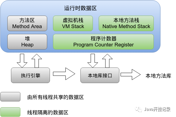 其中线程计数器、本地方法区、虚拟机栈内存,属于线程私有,随着线程的创建、销毁而创建销毁,所以不需要垃圾回收,那么垃圾回收就集中到了方法区和堆内存