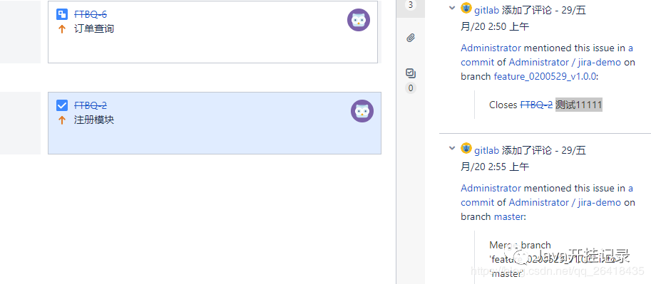 三、gitlab配置jira-代码push后jira自动显示注释,Merged Master后自动修改jira状态