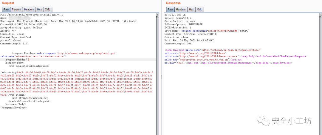 泛微E-cology OA系统的WorkflowServiceXml存在漏洞,攻击者可构造特定的xml数据包,造成命令执行