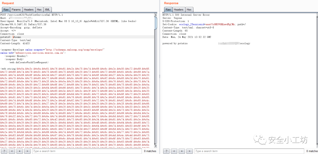 在header头上添加potats0头,命令从header中potats0读取,结果直接回显到返回包(以下仅核心内容,完整请求有点多,未写上):